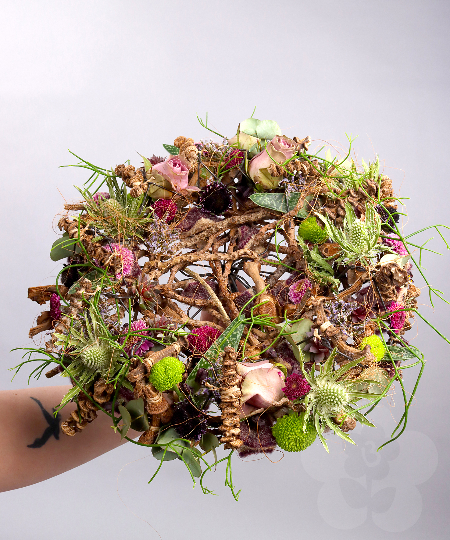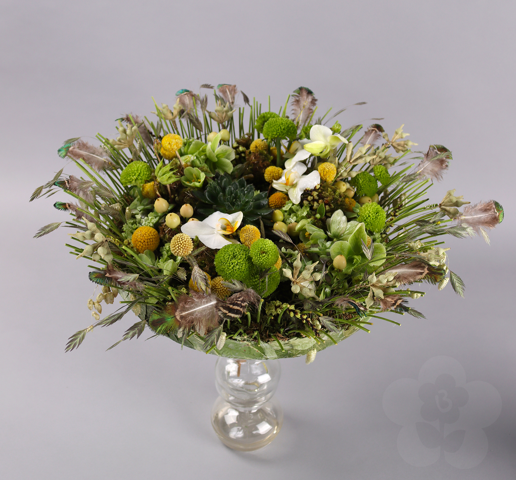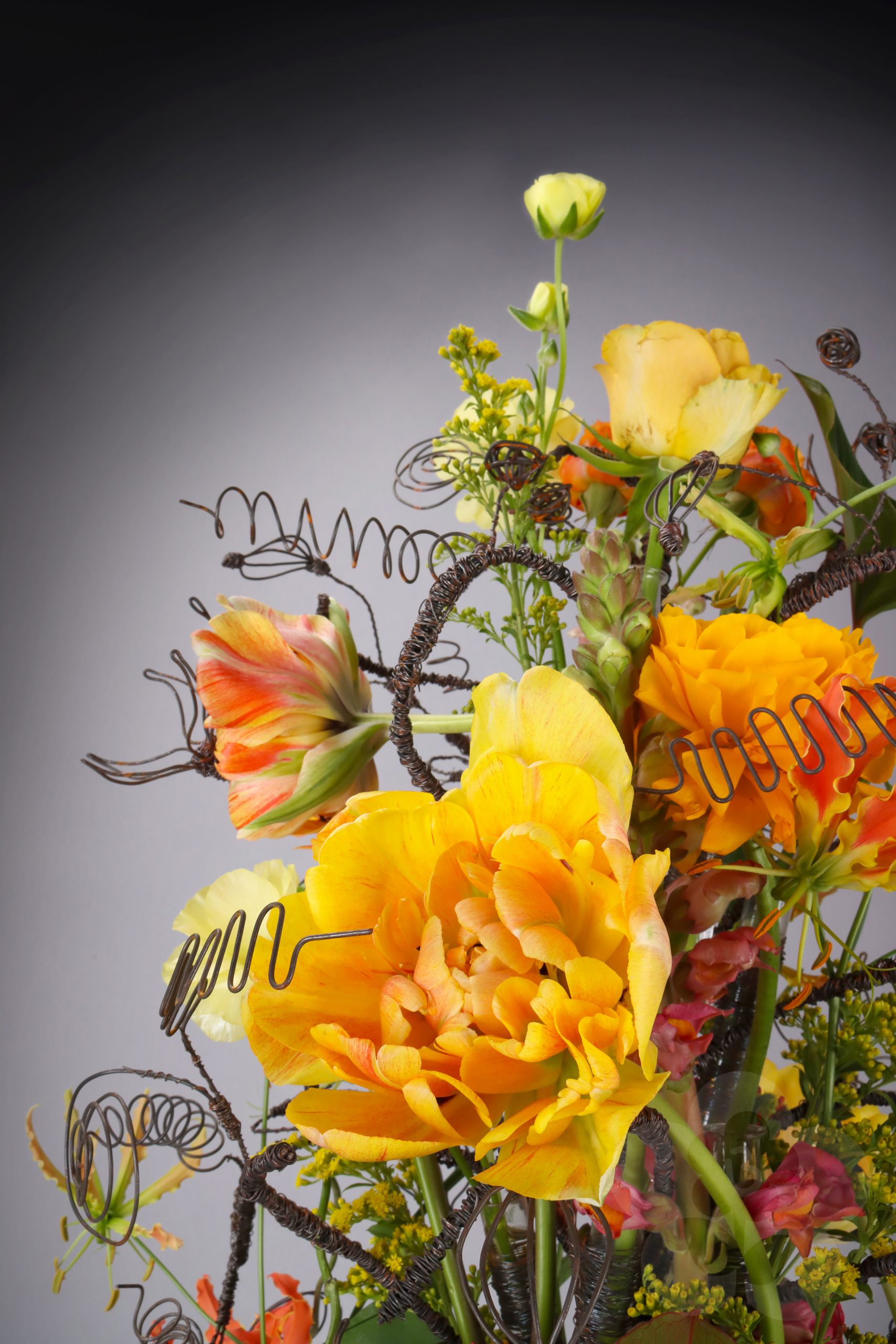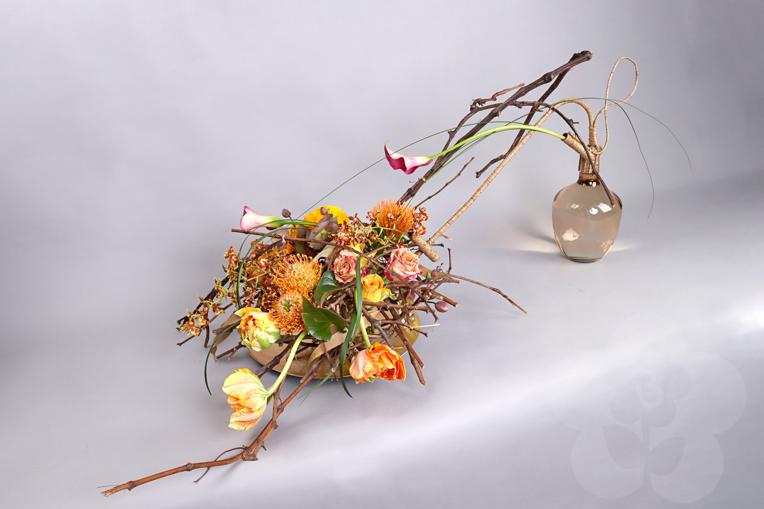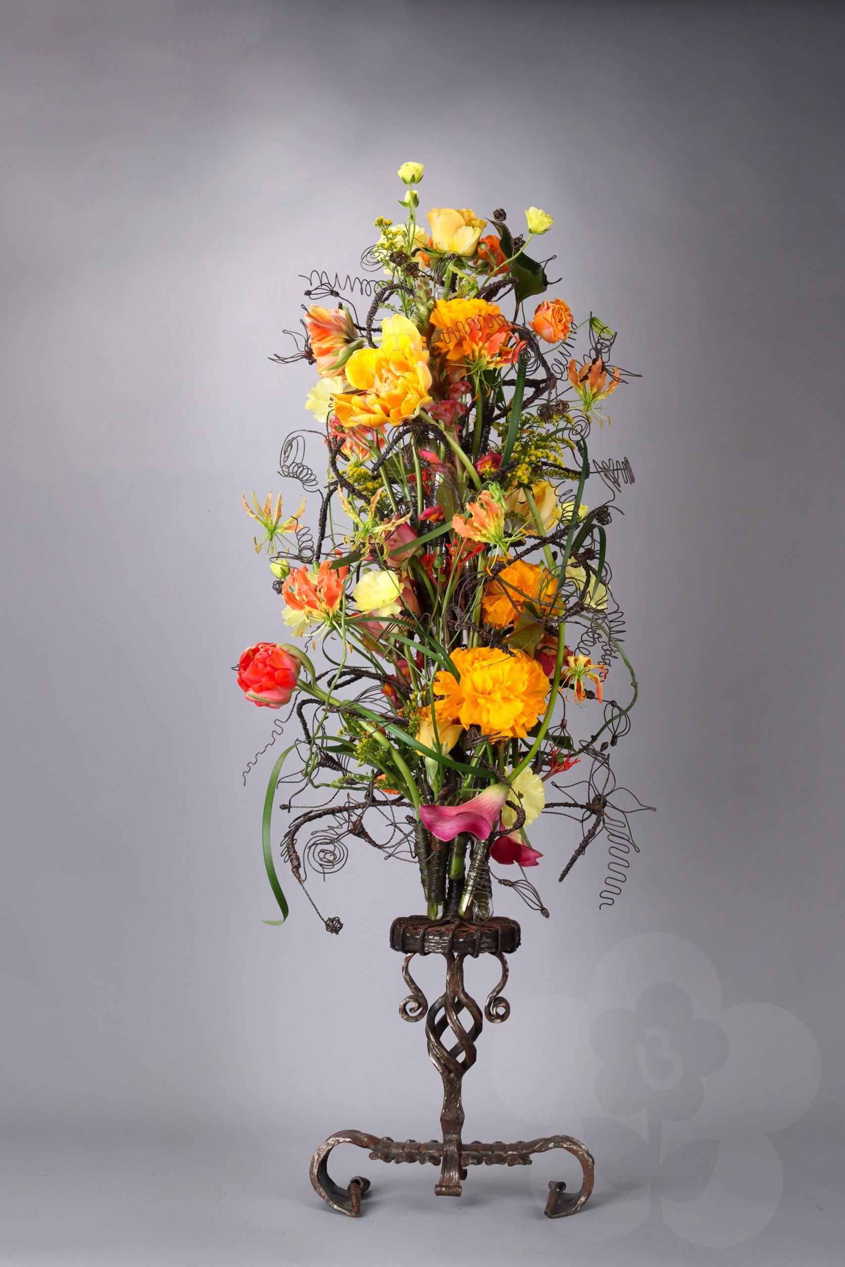 The International Master Florist Education also includes an exam. This is judged by Gregor Lersch and two other great Master Florists. This time the other judges were Nicky Markslag and Nicu Bocancea. Nicky Markslag is a Dutch Master Florist who has worked internationally for decades. During this time, she has also been responsible for the Flower Arranging Theater at Keukenhof. For those who aren’t familiar with the Keukenhof, it is the world’s biggest flower garden and one of the Netherlands’ biggest tourist attractions. Nicu Bocancea, a Romanian Master Florist, has studied under Gregor Lersch for many years. He is the current Romanian Floristry Champion and competes in floral design competitions on a global scale. In his daily life, he runs multiple flower shops together with his family. It is these three Master Florists who have judged the exam work of the IMF students with a critical eye. The following slideshow is a gathering of these lovely works created by the people that are now International Master Florists, certified by Gregor Lersch.